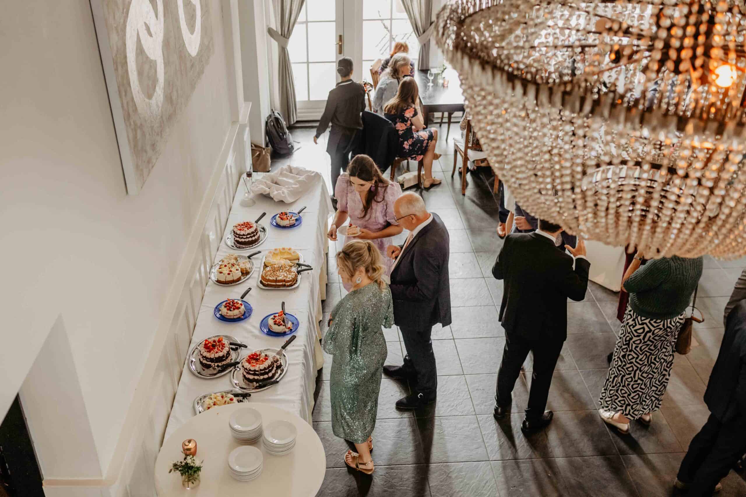 In het Koetshuis was vervolgens de receptie. Hier waren veel extra gasten ook voor uitgenodigd. Vanwege het lekkere lenteweer kon men zowel binnen als buiten genieten van een stukje taart en de borrel. Een heerlijke gezelligheid! 🙂