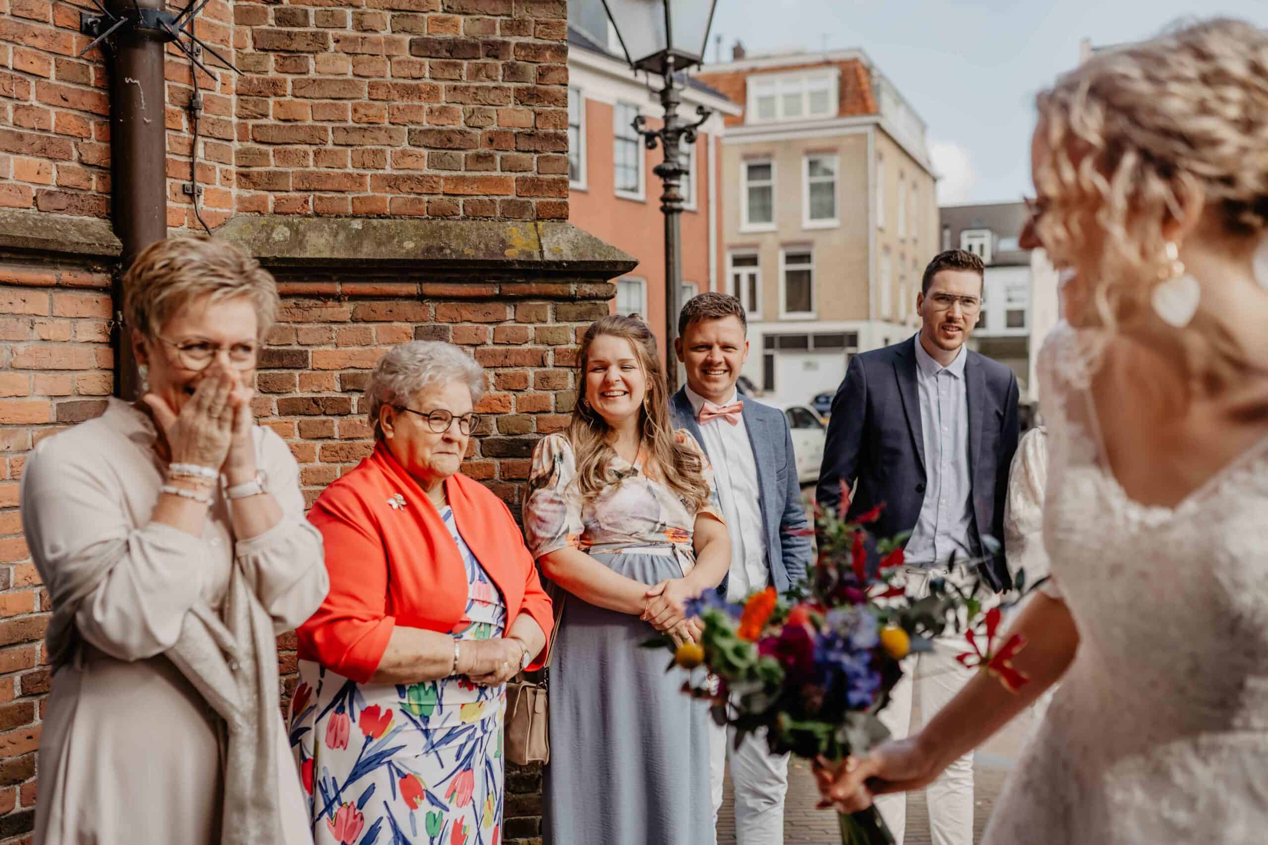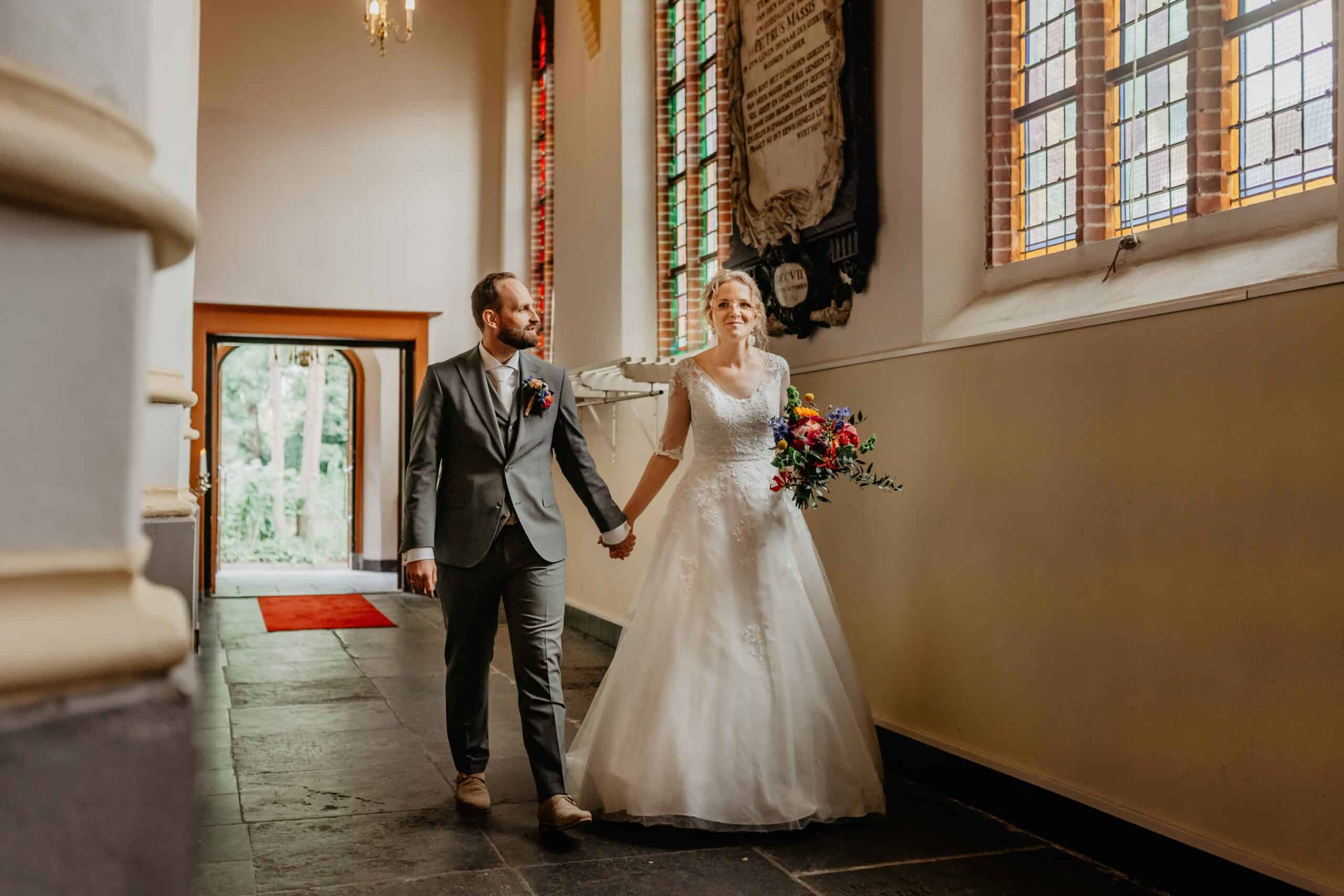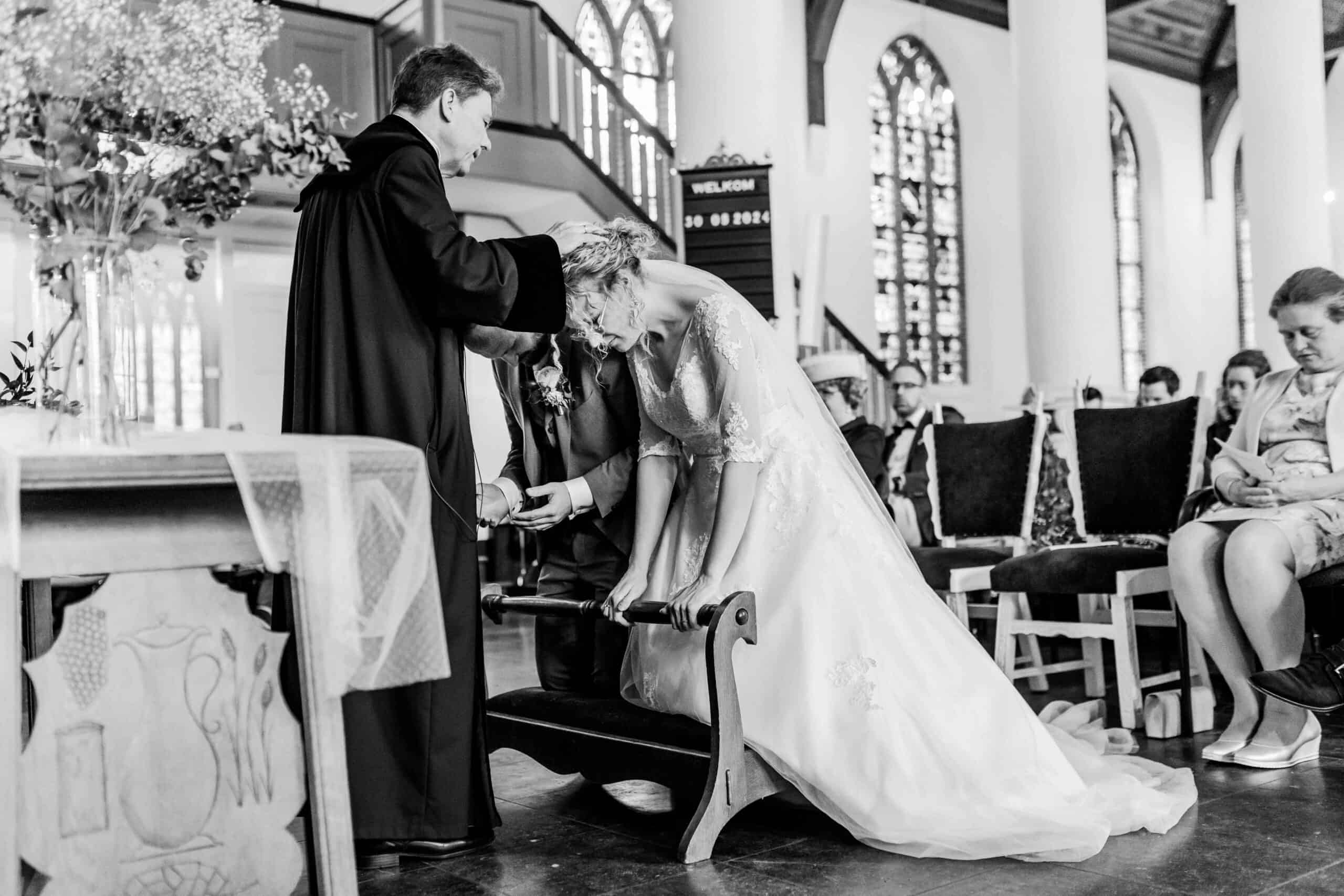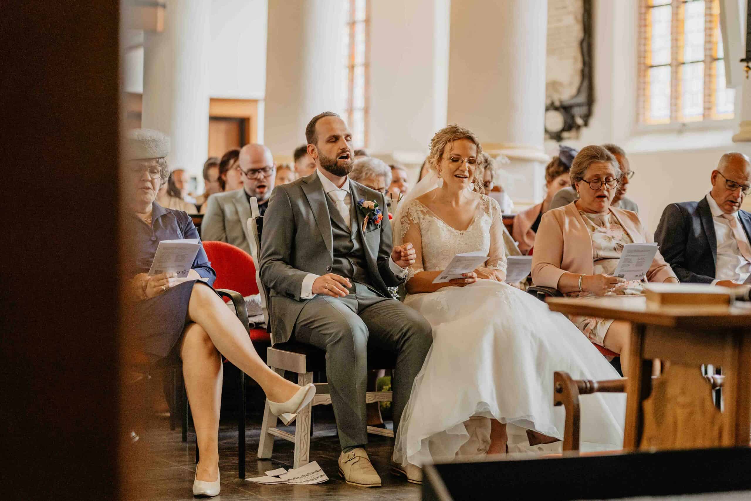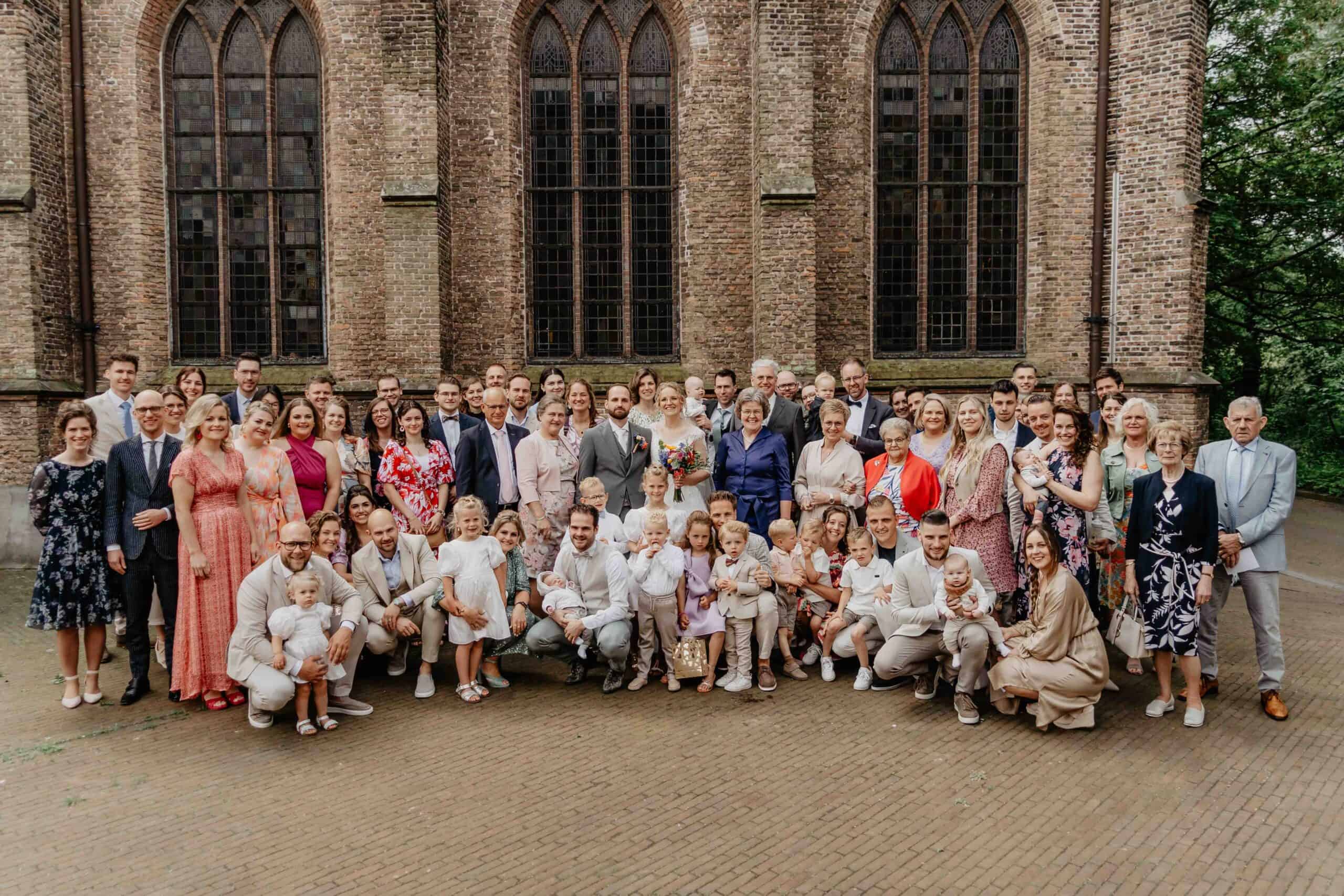 Het ontvangst door de daggasten was vrolijk en gezellig. Met name oma was helemaal ontroerd toen ze bruid Reinelieke in haar trouwjurk zag. Na een kort welkom was het tijd voor de ceremonie. Deze vond ook plaats in de Adriaen Janszkerk, zo sfeervol! Er werd hard gelachen tijdens de speech van de trouwambtenaar en Wouter & Reinelieke waren erg ontspannen. En de kindjes gingen tijdens de ceremonie lekker hun eigen gang 🙂