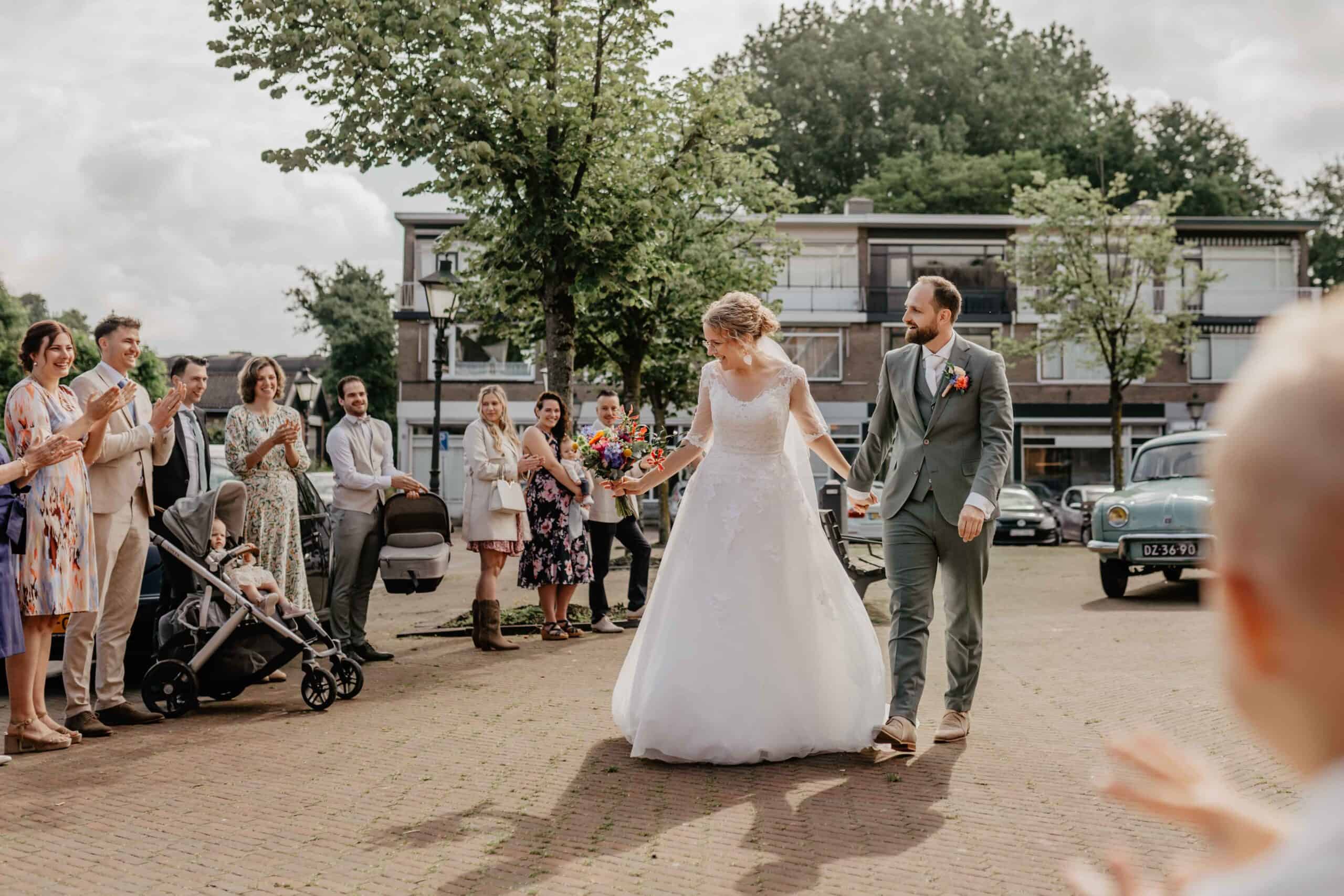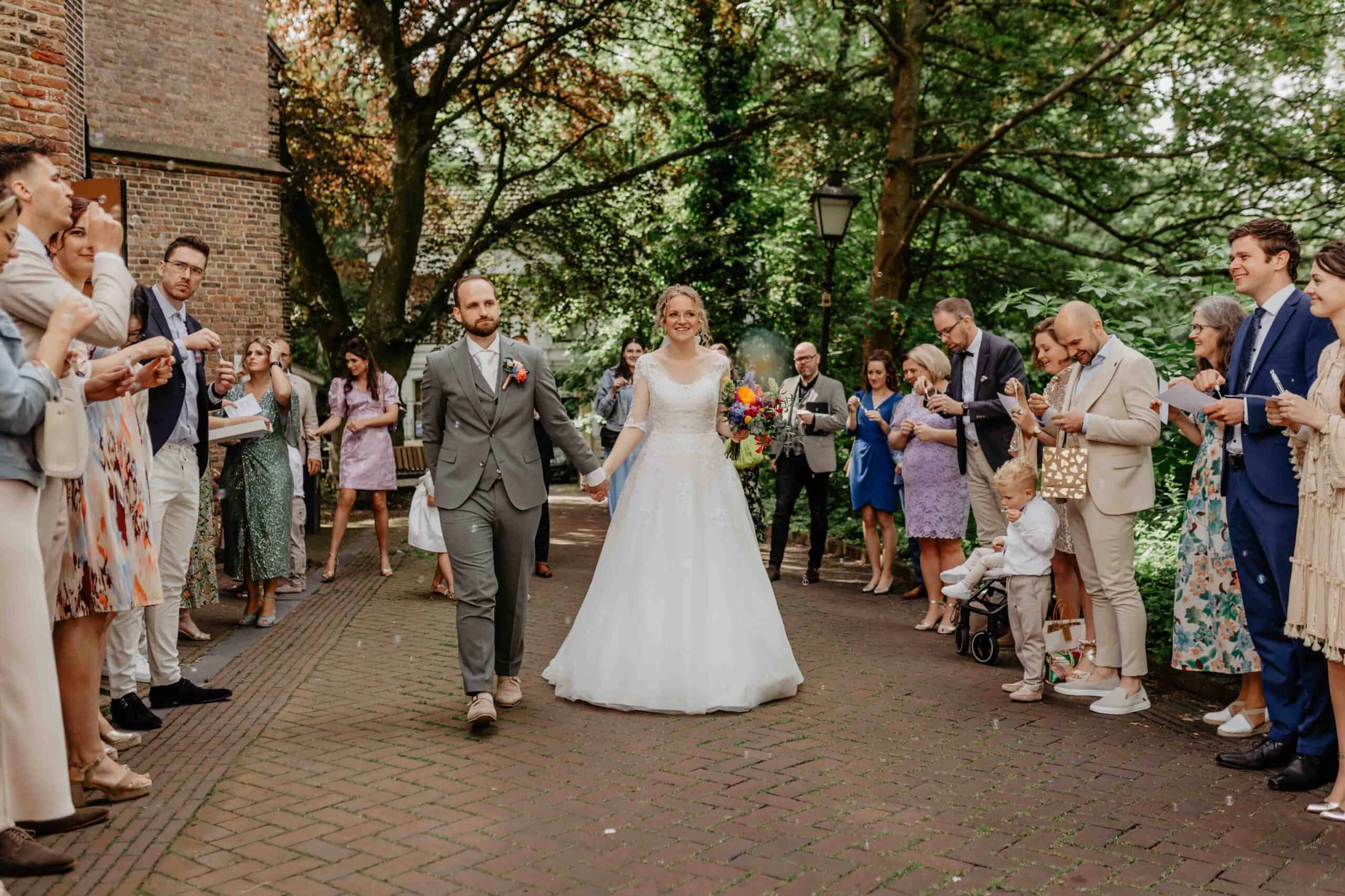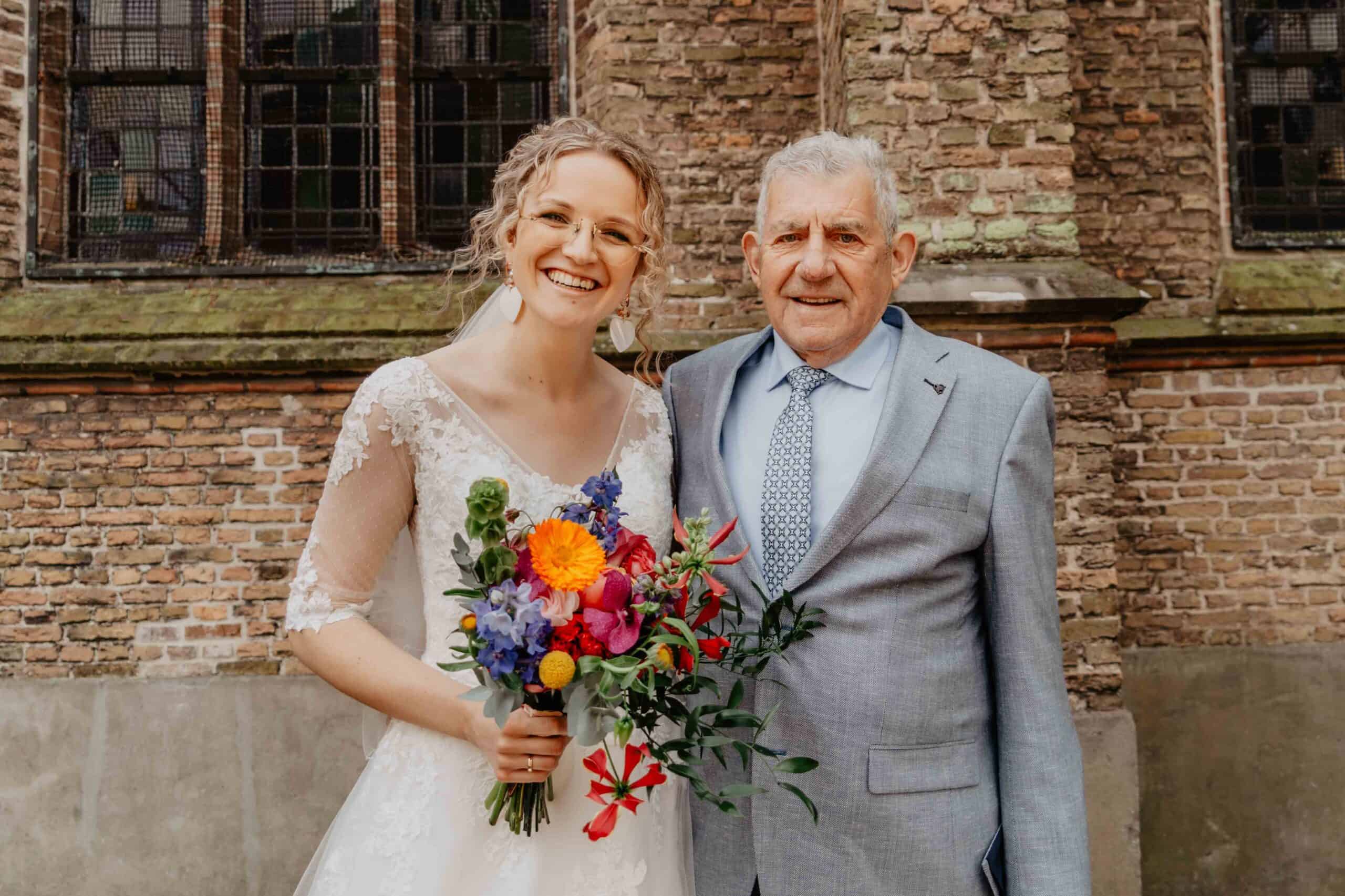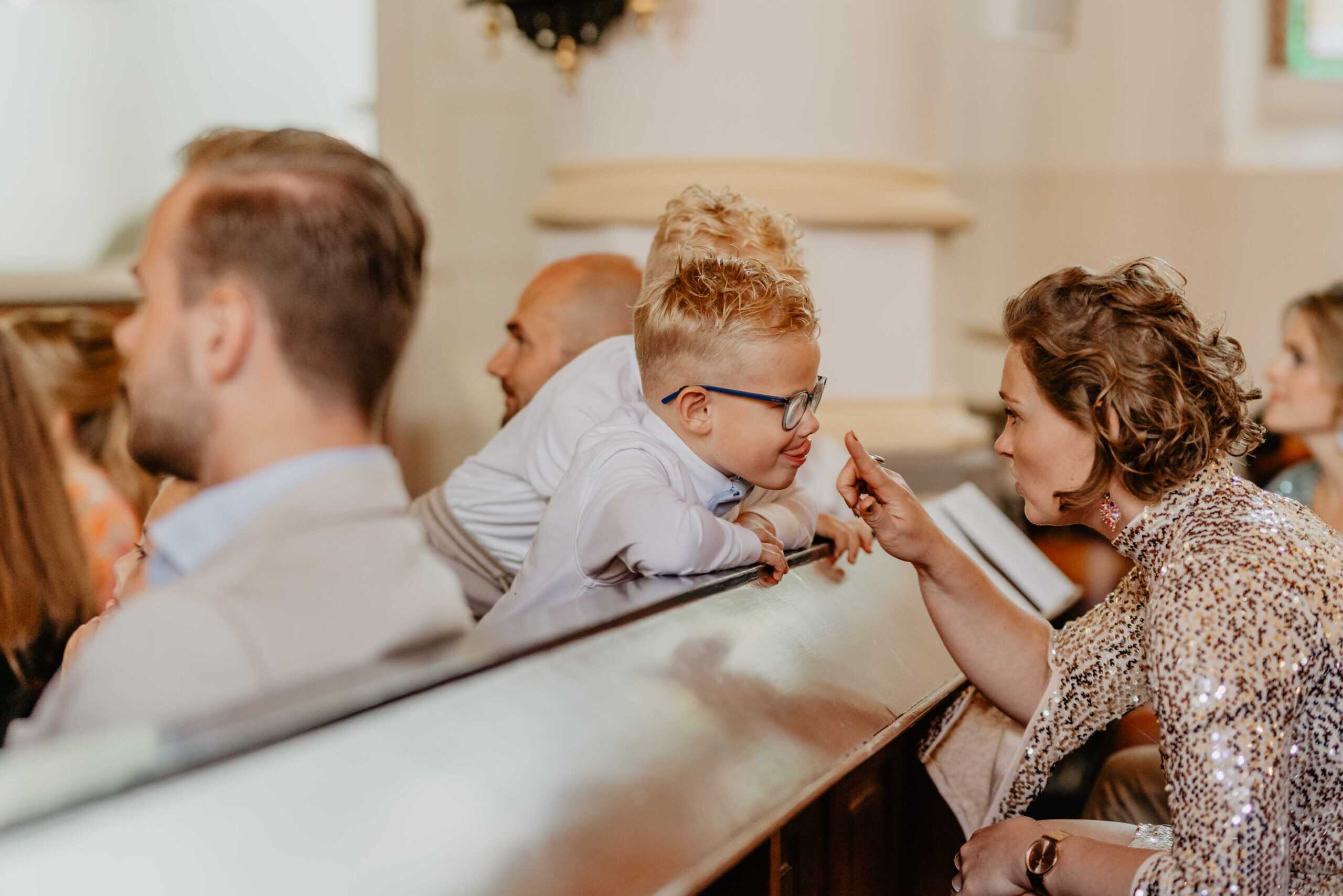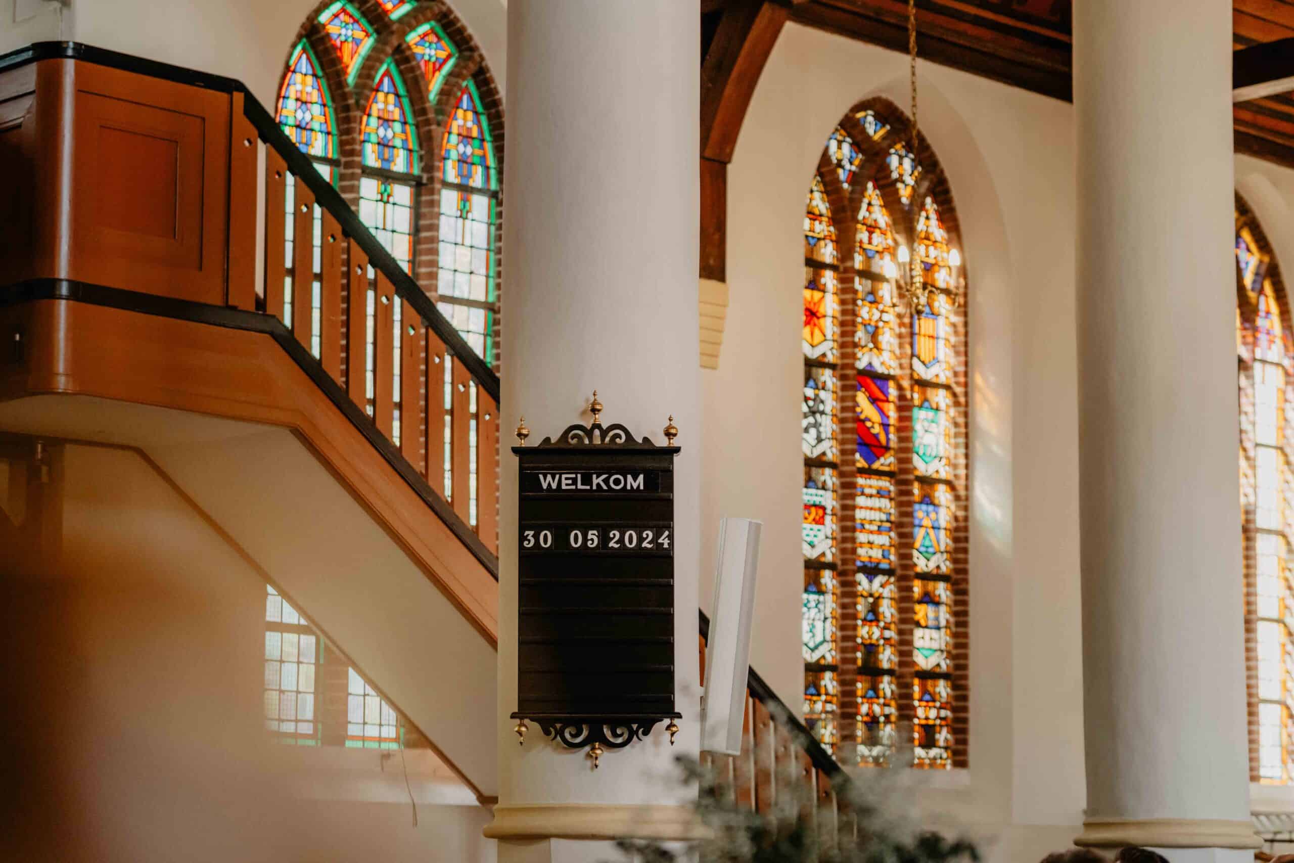 Het ontvangst door de daggasten was vrolijk en gezellig. Met name oma was helemaal ontroerd toen ze bruid Reinelieke in haar trouwjurk zag. Na een kort welkom was het tijd voor de ceremonie. Deze vond ook plaats in de Adriaen Janszkerk, zo sfeervol! Er werd hard gelachen tijdens de speech van de trouwambtenaar en Wouter & Reinelieke waren erg ontspannen. En de kindjes gingen tijdens de ceremonie lekker hun eigen gang 🙂