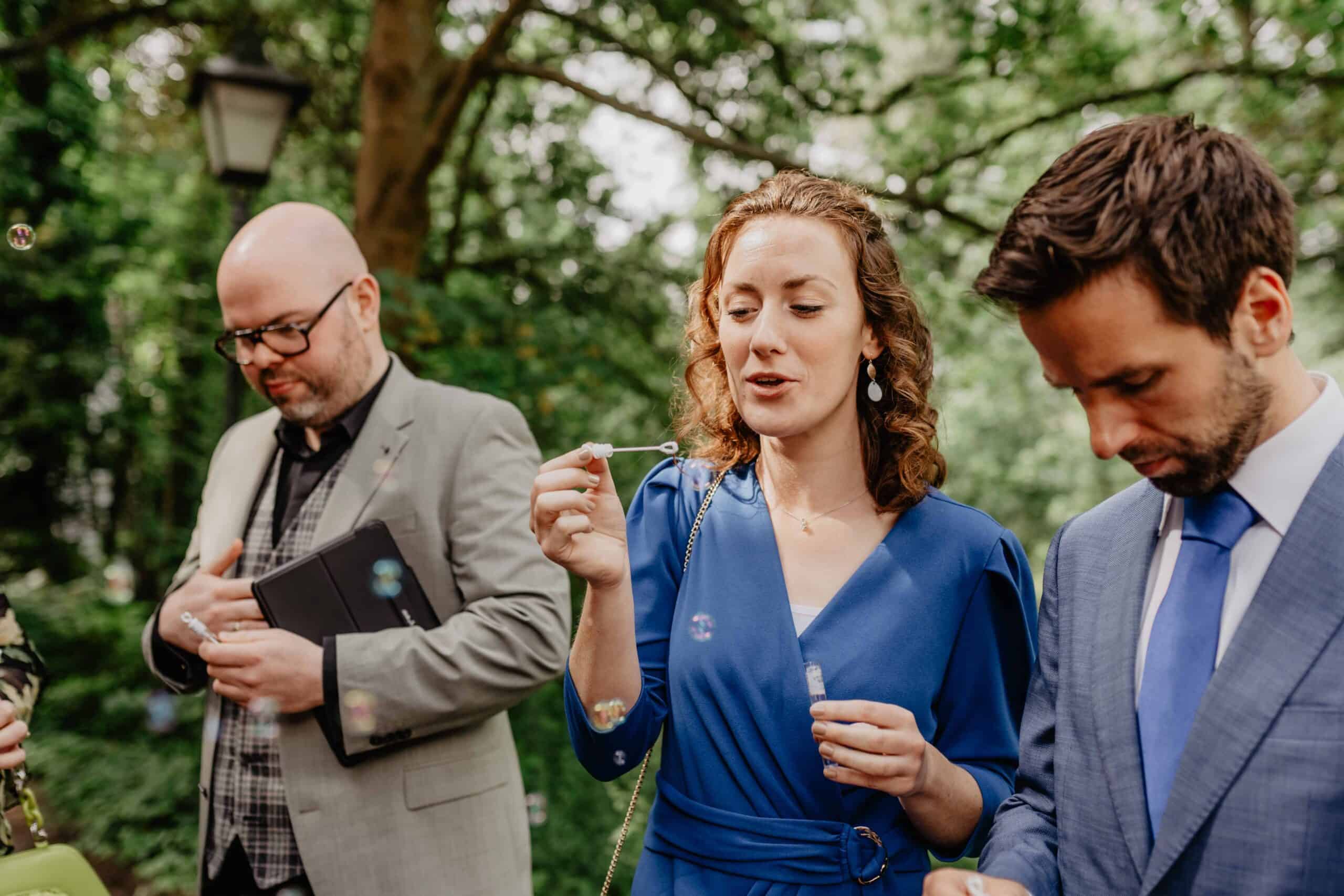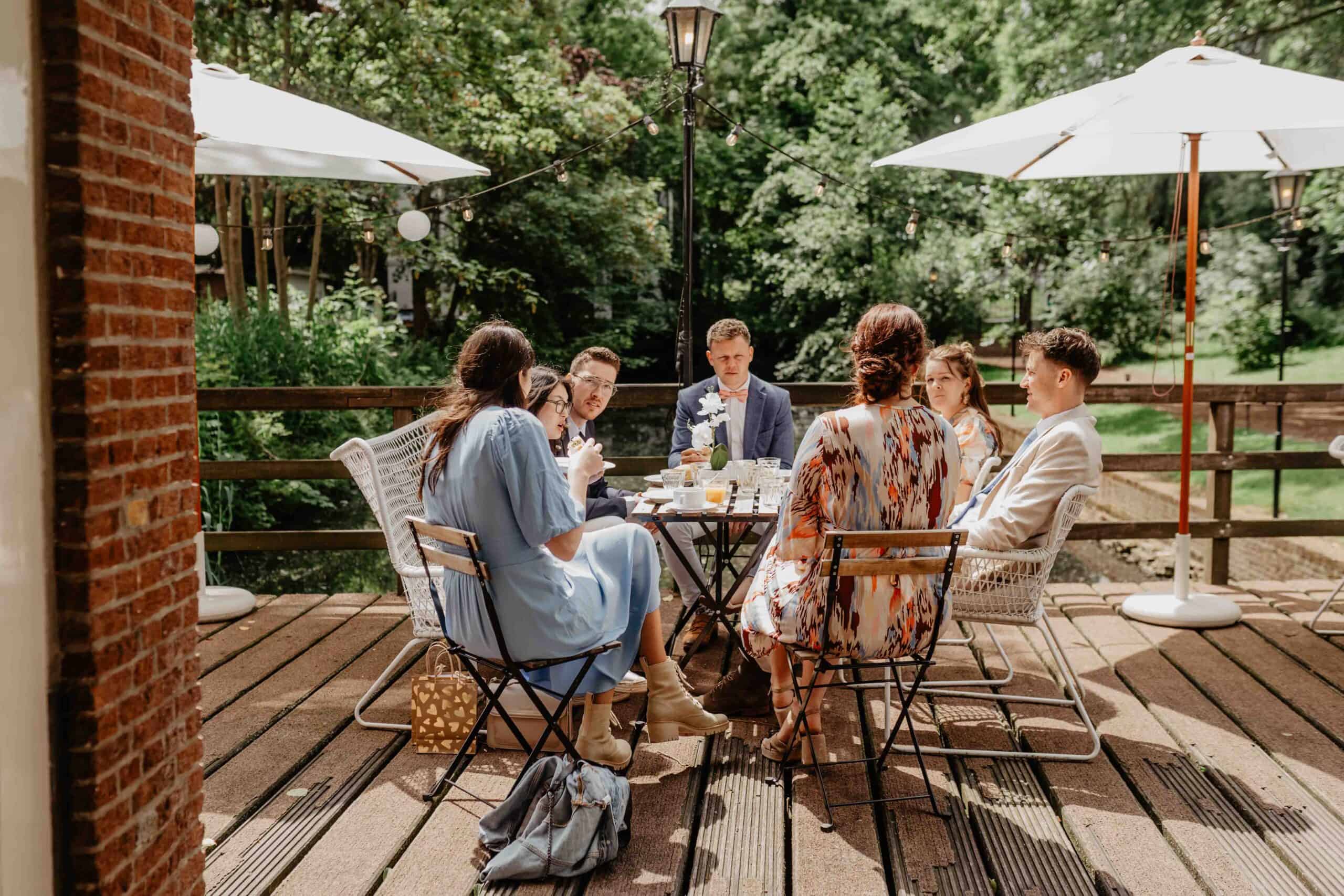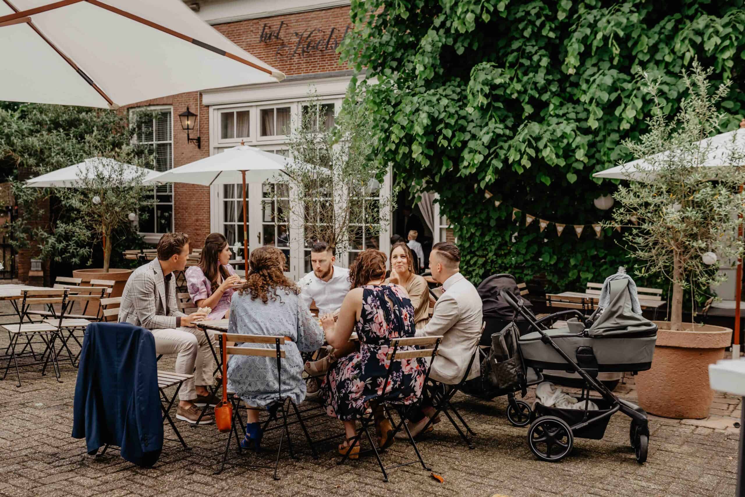 Tussen de ceremonie en de kerkdienst was er voldoende tijd voor bellenblaas, groepsfoto’s en een heerlijke lunch bij Het Koetshuis. Mmmmh, wat smaakte dat goed!