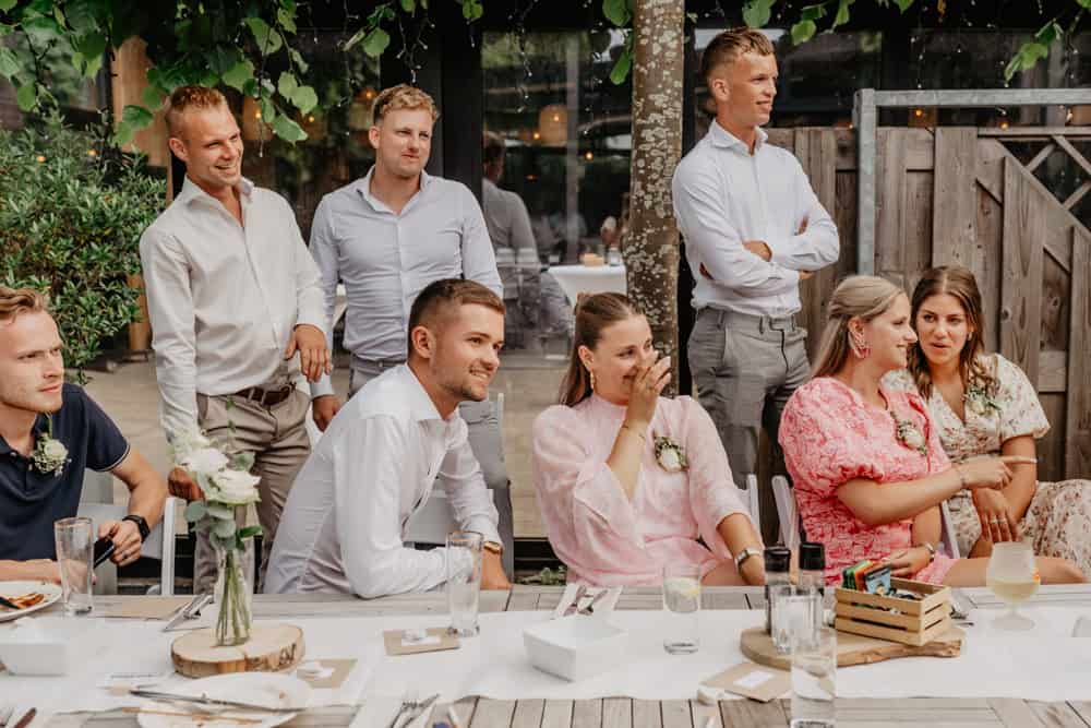 Terug bij ‘t Manneke (in Zuid-Holland) hebben we nog heerlijk in de tuin doorgebracht voor de toost en het feliciteren. Intussen werd een andere plek klaargemaakt voor het diner; vanwege het mooie weer kon ook dít buiten! Tijdens het diner hebben we hard meegelachen om de grappige stukjes door de families en konden we ook meesmullen met het lekkere diner ☺️ Ja, het heeft zo zijn voordelen hoor, om fotograaf te zijn! 😂